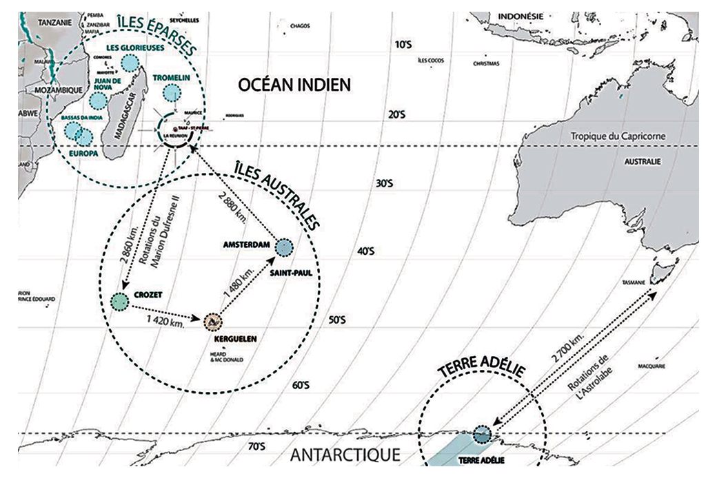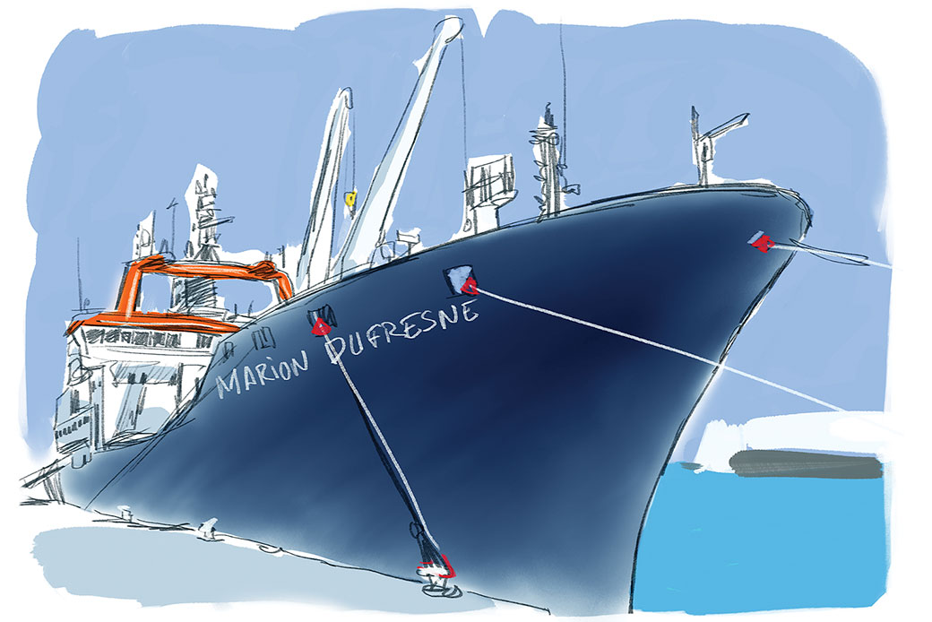 Chaque jour, une carte postale dessinée de mon périple à bord du navire qui assure la relève et le ravitaillement des îles Tromelin, La Possession de l’archipel Crozet, des Kerguelen puis Saint-Paul et Amsterdam.